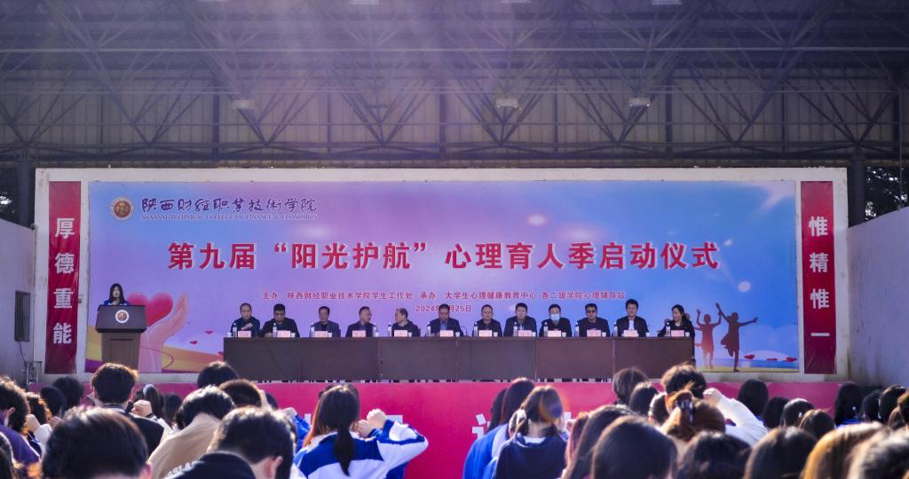 为深入贯彻落实《中共陕西省委教育工委办公室关于开展第九届陕西高校“阳光护航”心理育人宣传季实践活动的通知》精神,进一步做好我校心理育人工作,提升心理育人师资队伍专业水平,2024年3月25日下午,我校第九届“阳光护航”心理育人宣传季启动仪式暨心理育人专题培训会隆重举行。学校副校长雷旭,学生工作处、各二级学院书记有关负责人,全体辅导员,2023级全体心理委员以及千余名学生代表参加活动。仪式由学生工作处处长乔晶策主持。
