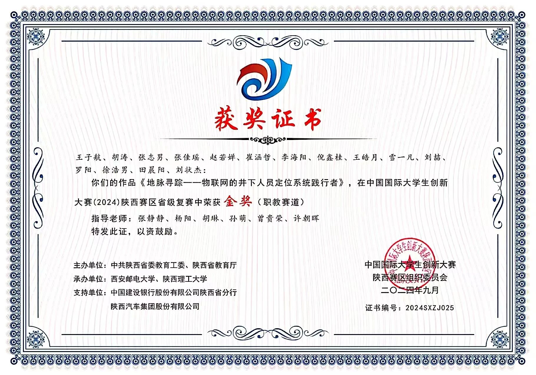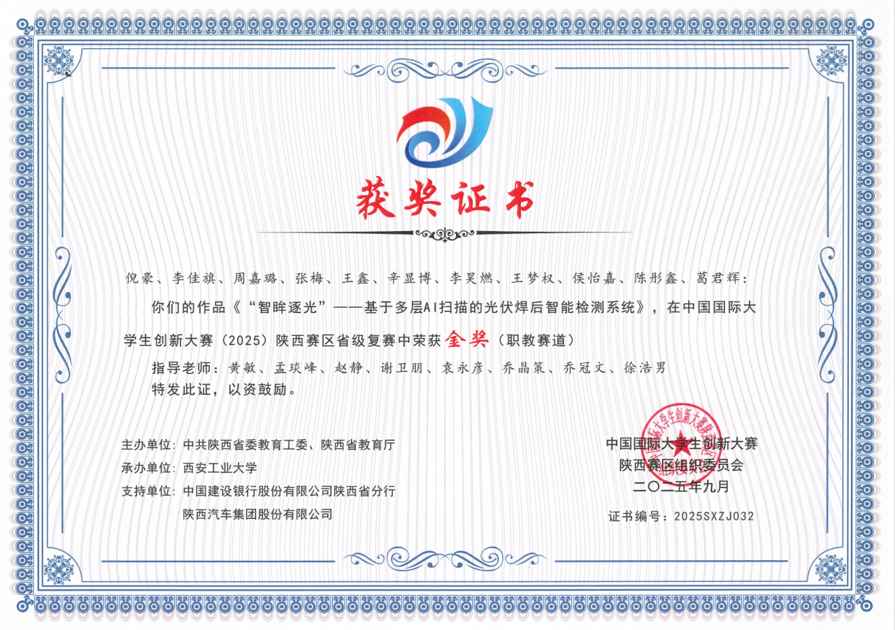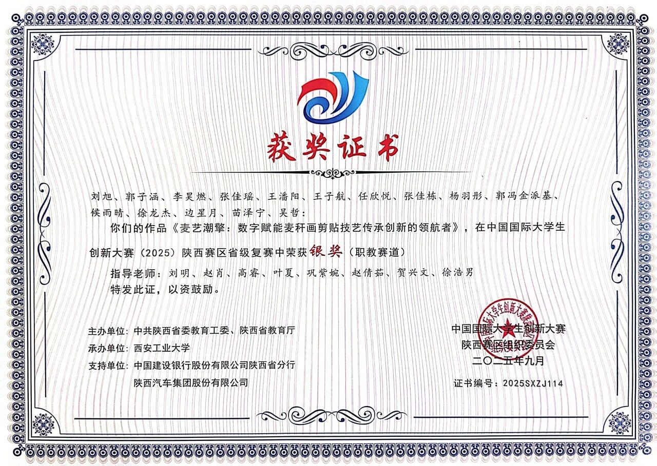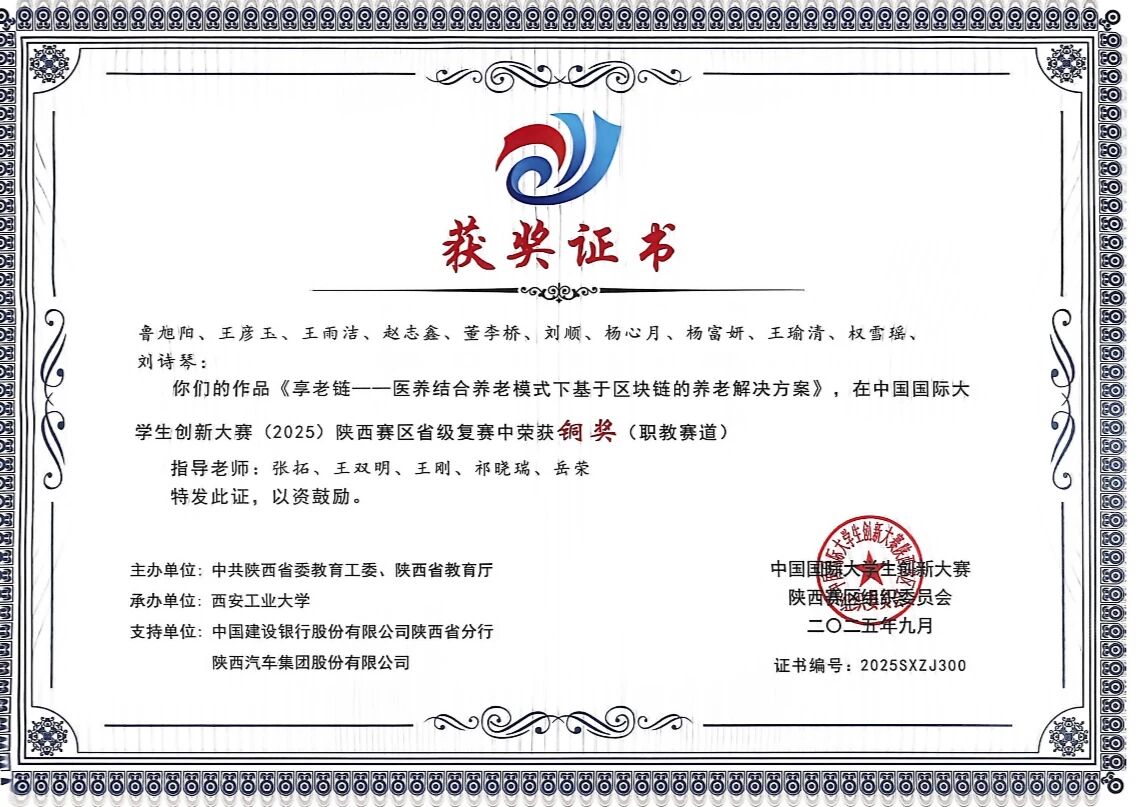 该生在校期间学习上勤奋钻研,刻苦努力,专业成绩位列年级前列,荣获校级二等奖学金和“三好学生”荣誉称号,考取英语B级证书。积极参与各项学科竞赛,获得2025年中国国际大学生创新大赛省级金奖、第十五届“挑战杯”陕西省大学生课外学术科技作品竞赛特等奖。课余时间积极投身各类社会实践活动,积极参加暑期“三下乡”社会实践活动,不断提升个人综合能力。