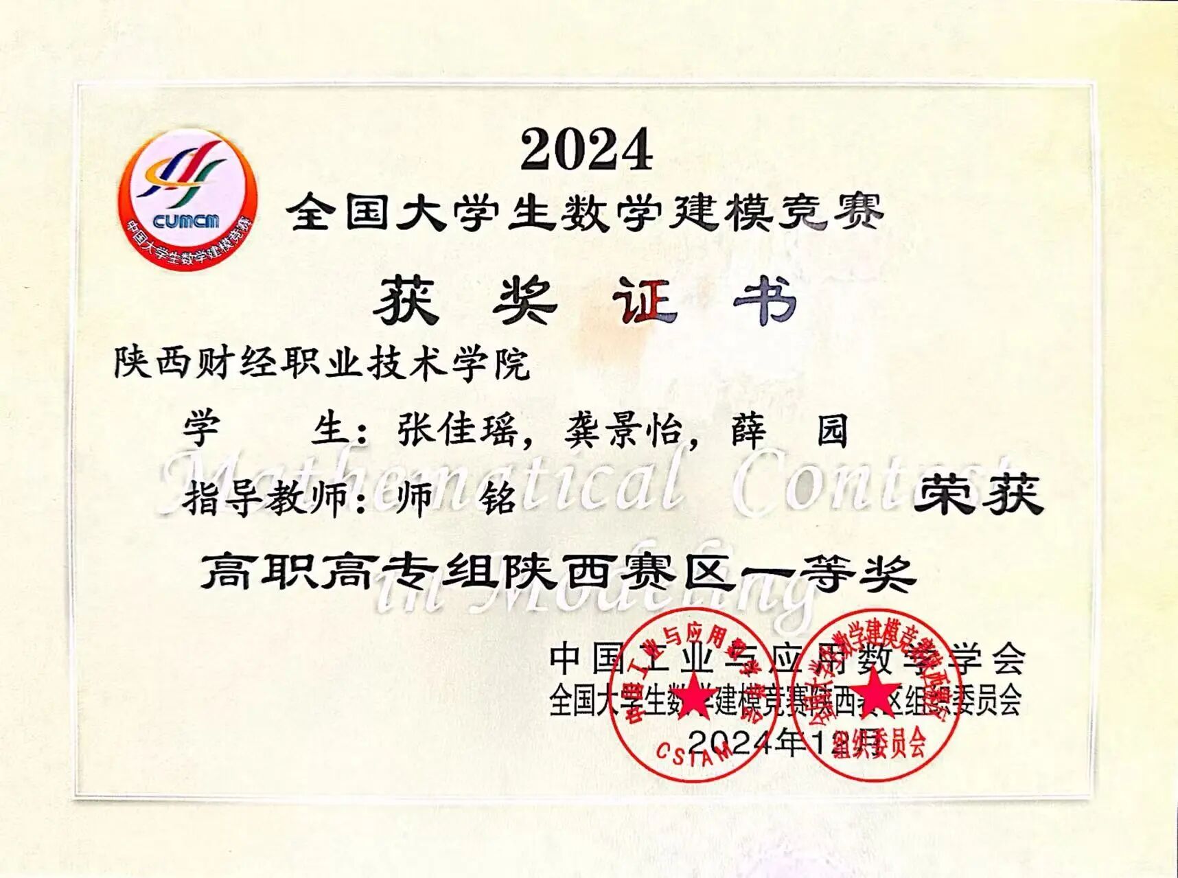 该生在校期间担任校创新创业协会网信部副部长、学院运营组组长,积极参加各类技能大赛,荣获第二届全国大学生职业规划大赛总决赛金奖,2024中国国际大学生创新大赛国赛铜奖,2024年全国大学生数学建模竞赛陕西省赛区一等奖;学业上刻苦钻研,荣获学院奖学金,“三好学生”,“十佳我身边的好青年”等荣誉称号;积极参加暑期“三下乡”志愿服务活动,践行社会责任与担当。
