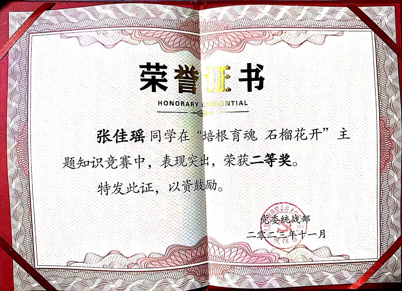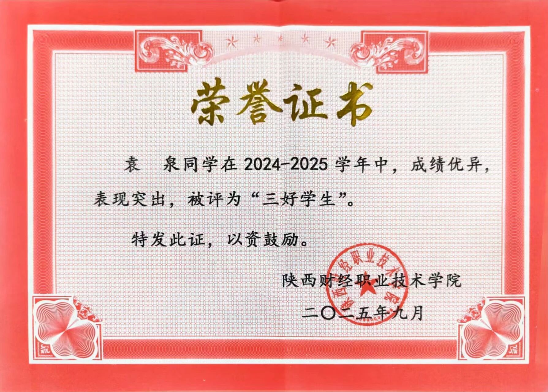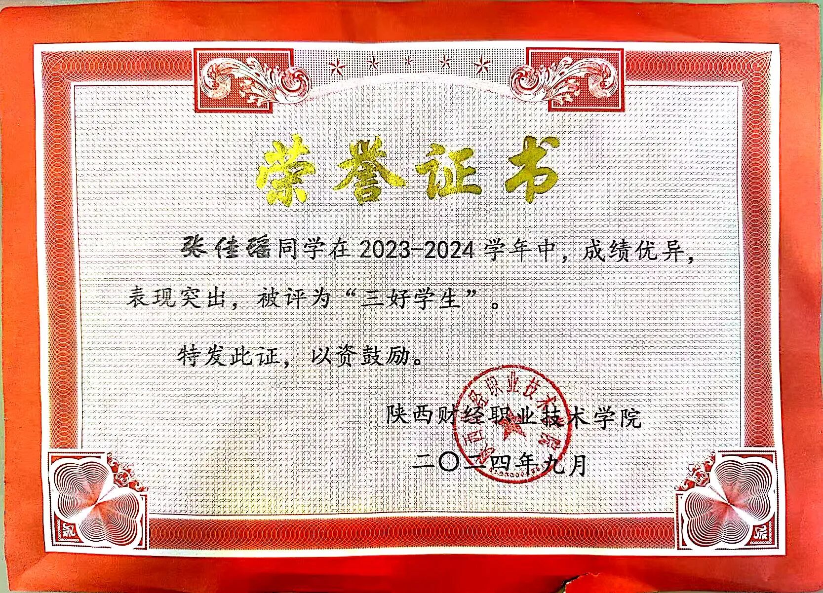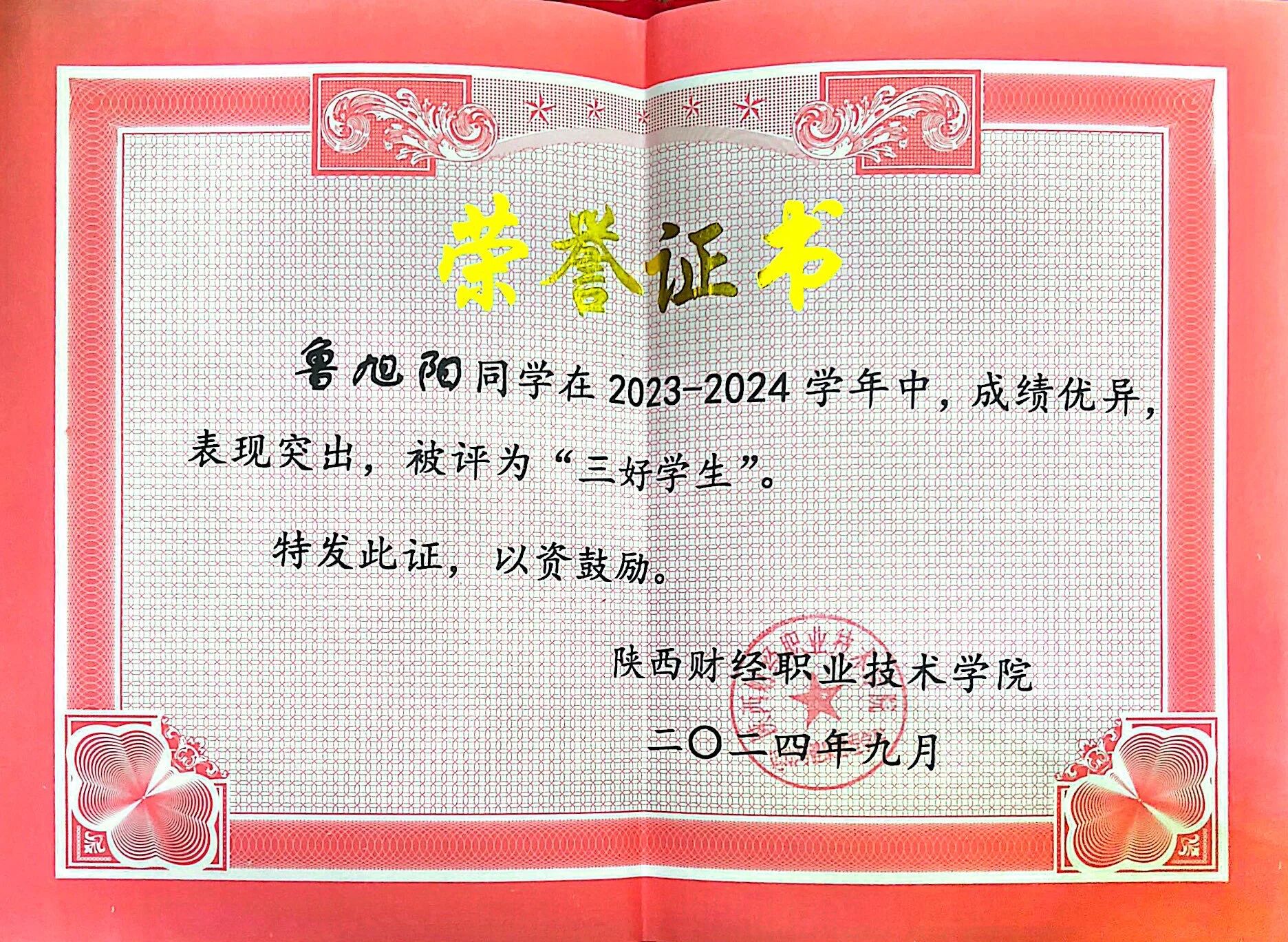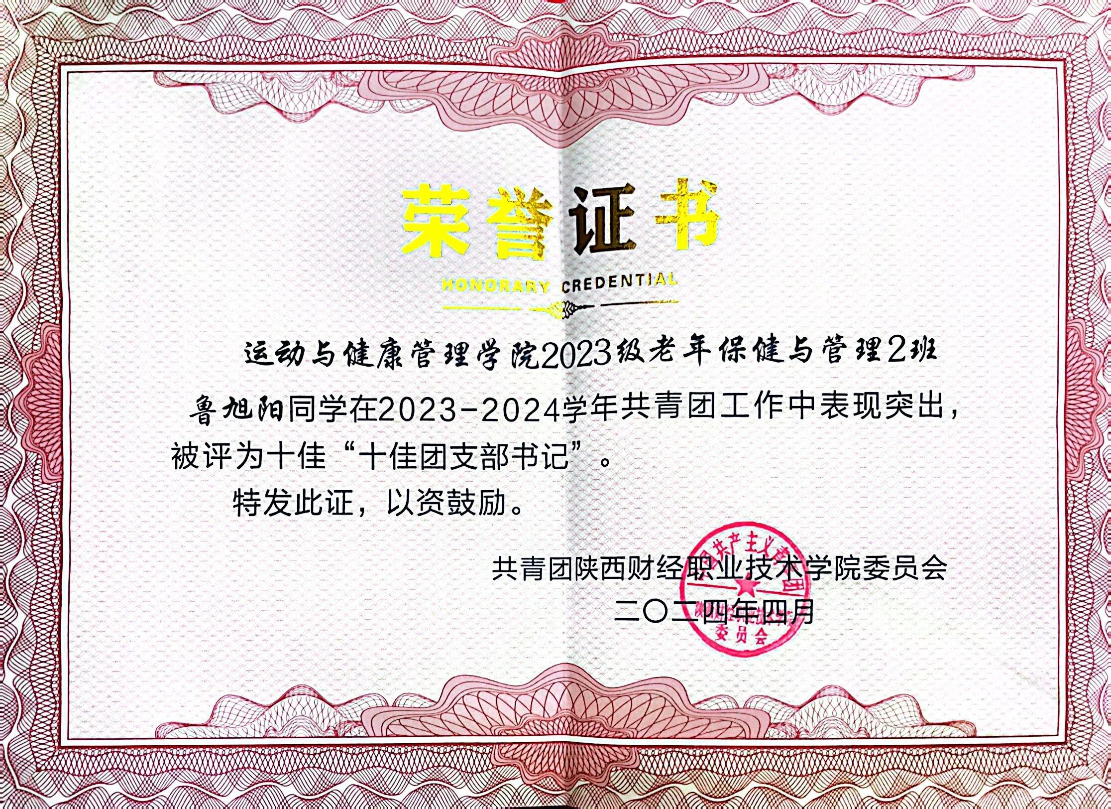 该生在校期间担任班级团支书兼副班长,不断参加技能大赛,荣获世界职业技能大赛总决赛争夺赛金奖,在陕西省职业技能大赛中斩获金奖。学习上,刻苦认真,连续两学年获得国家奖学金,以及“三好学生”及“十佳品学兼优好青年”等多项荣誉。作为团支书,认真学习团务知识,积极参加团委组织的各项活动,获得“十佳团支书”、“十佳共青团干部”及“优秀共青团干部”等荣誉称号。