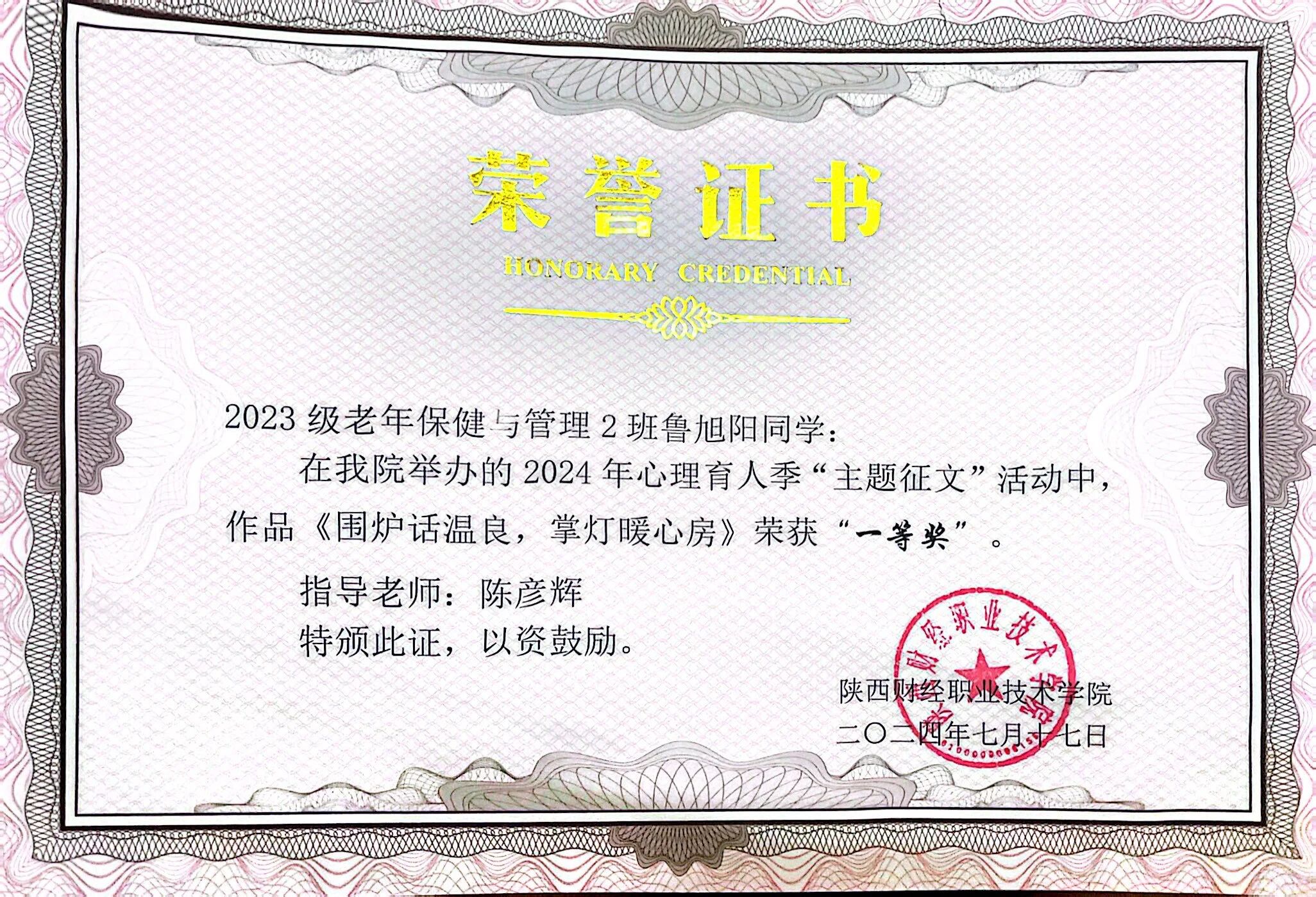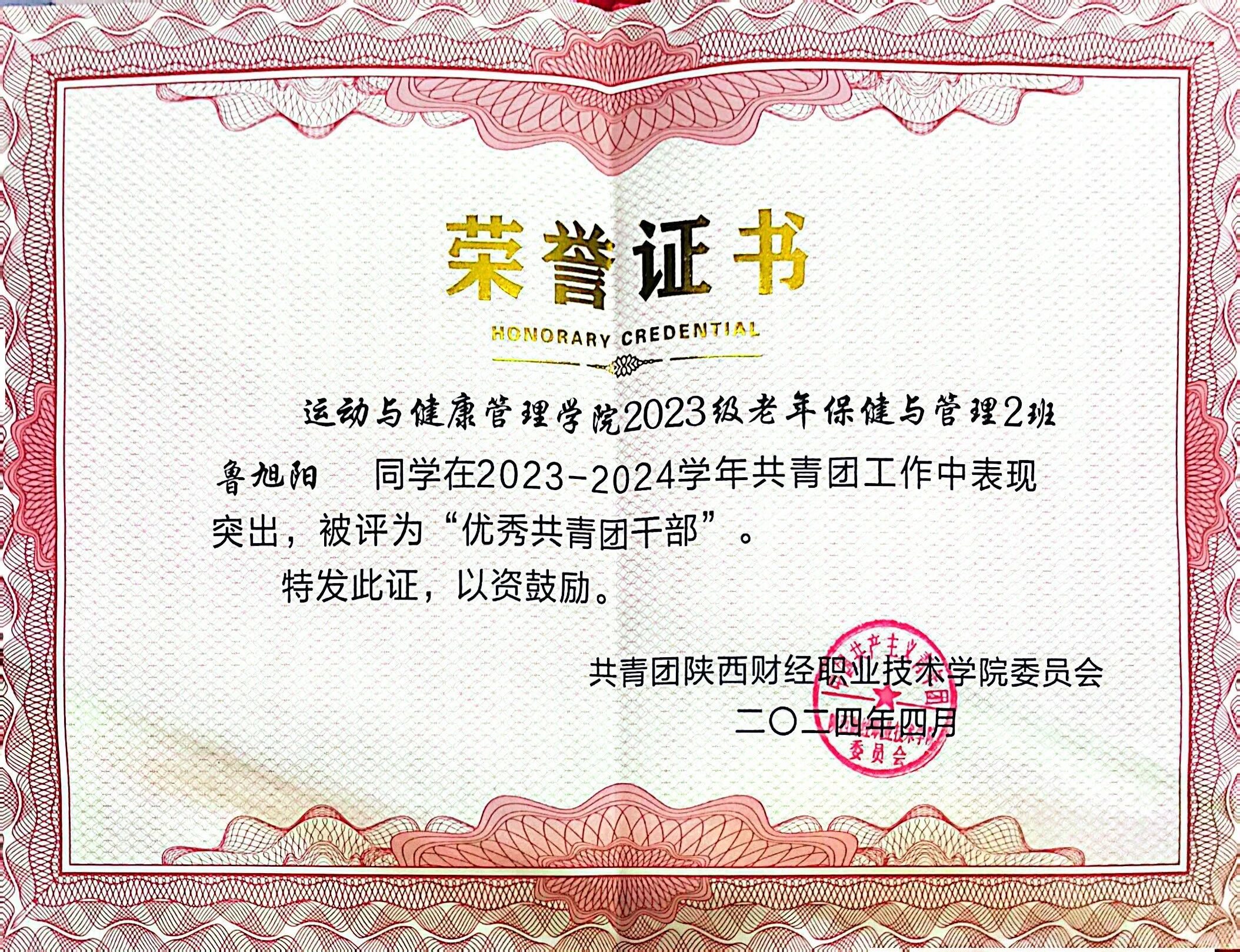 鲁旭阳,男,汉族,共青团员,2004年5月出生,运动与健康管理学院2023级老年保健与管理专业2班学生。