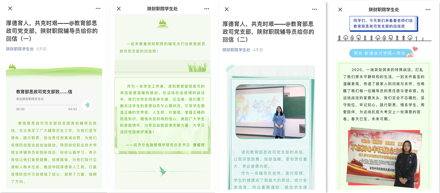 行动才是最好的回音!我院辅导员通过给教育部思想政治工作司党支部网络回信的方式,表决心、做承诺: