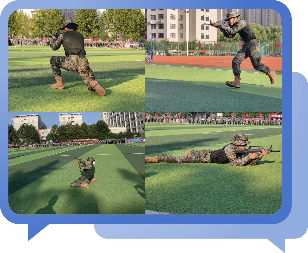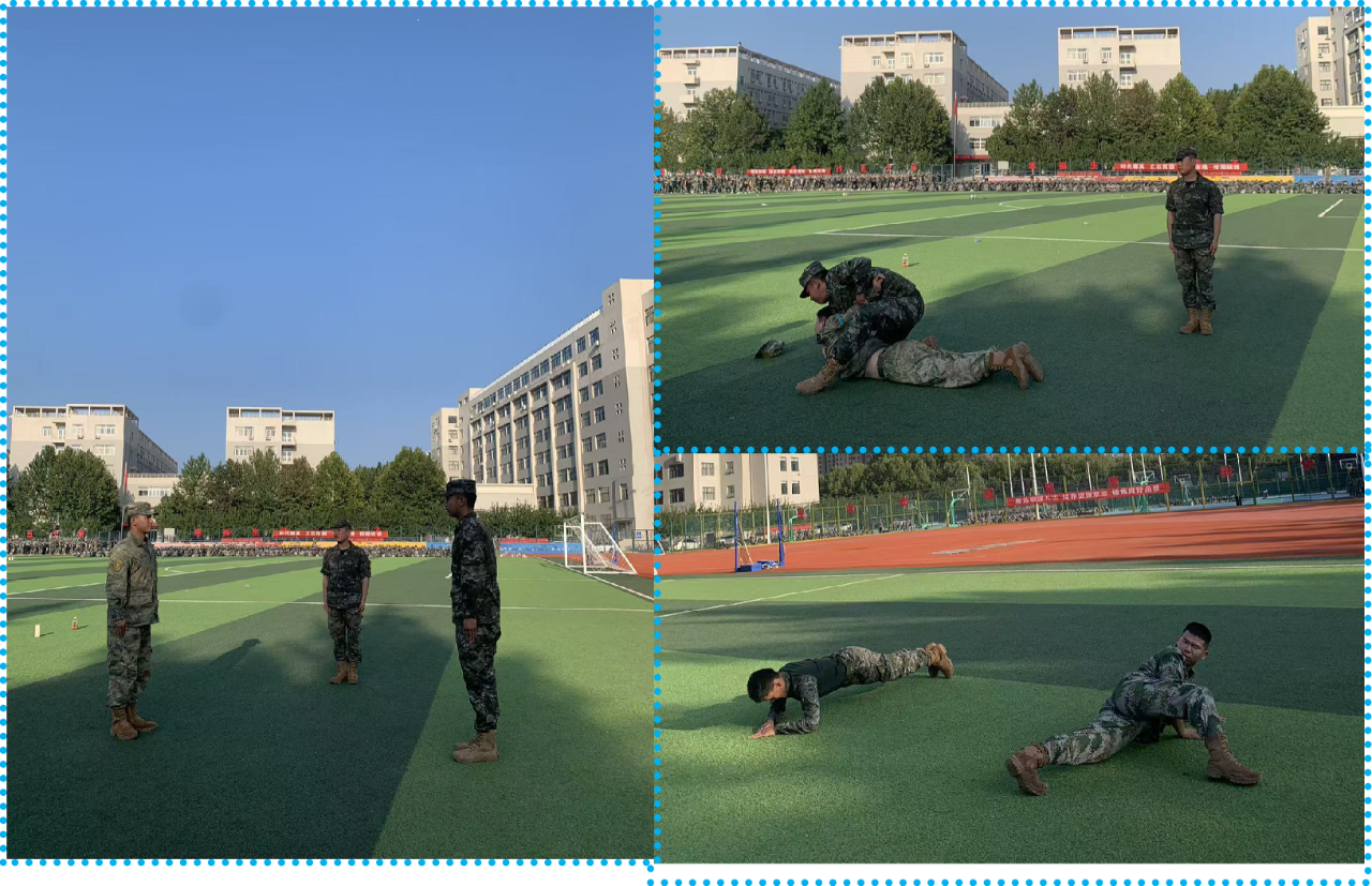 实战对打个人展示更是将现场气氛推向高潮。教官们两两分组,凭借在部队中练就的过硬格斗本领,展开激烈对抗。他们身手矫健、反应敏捷,攻防转换间行云流水,一招一式刚劲有力。从快速出拳到精准擒拿,从巧妙闪避到果断反击,每一个动作都展现出扎实的实战功底和无畏的战斗精神,赢得了现场师生的阵阵欢呼与喝彩。