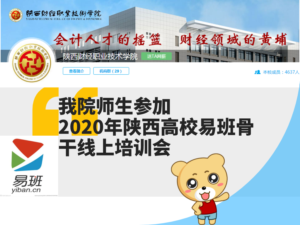6月19日,陕西高校易班发展中心组织的“2020年陕西高校易班骨干培训会”通过腾讯会议APP线上举办,全省30余所高校,近400名易班指导教师和学生骨干通过线上线下相结合的方式共同参加培训。我校易班工作站1名指导老师和4名学生骨干参加了培训会。 培训会从当天早上8点开始,一直持续到下午18点结束,会议以“陕西高校易班网络育人质量提升”为主题,由易班建设案例展示、二级院系(辅导员)易班工作经验分享、轻应用(...